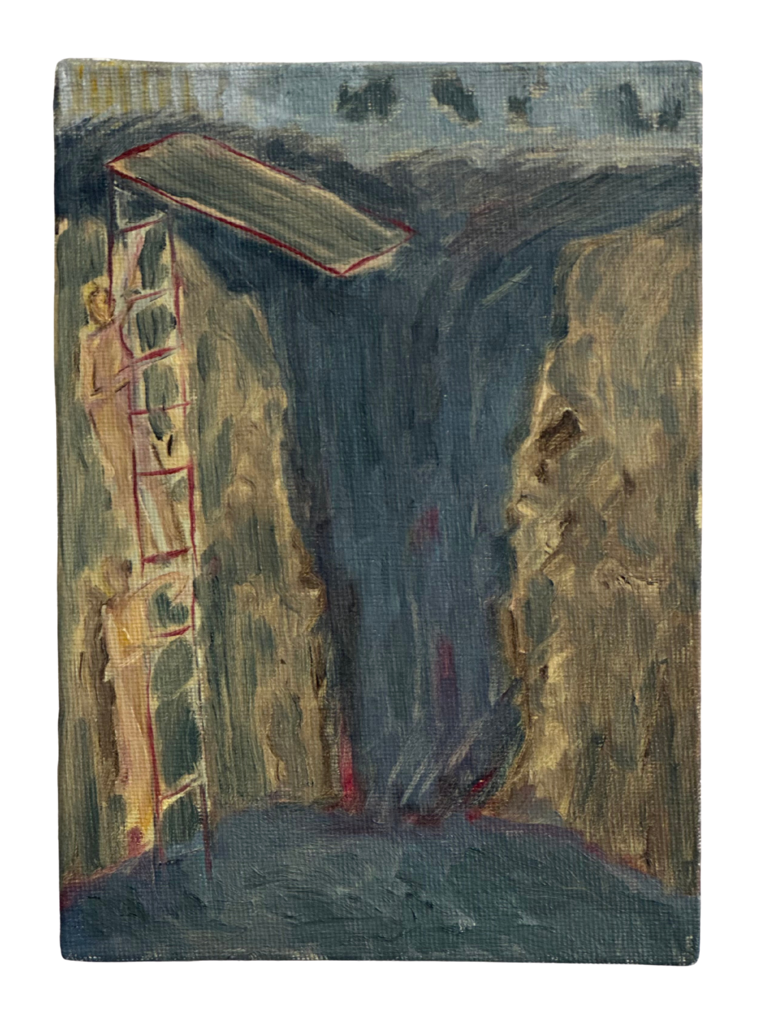 ‘Trust Believe’, oil on canvas panel, 12.5cm x 18cm, unframed.