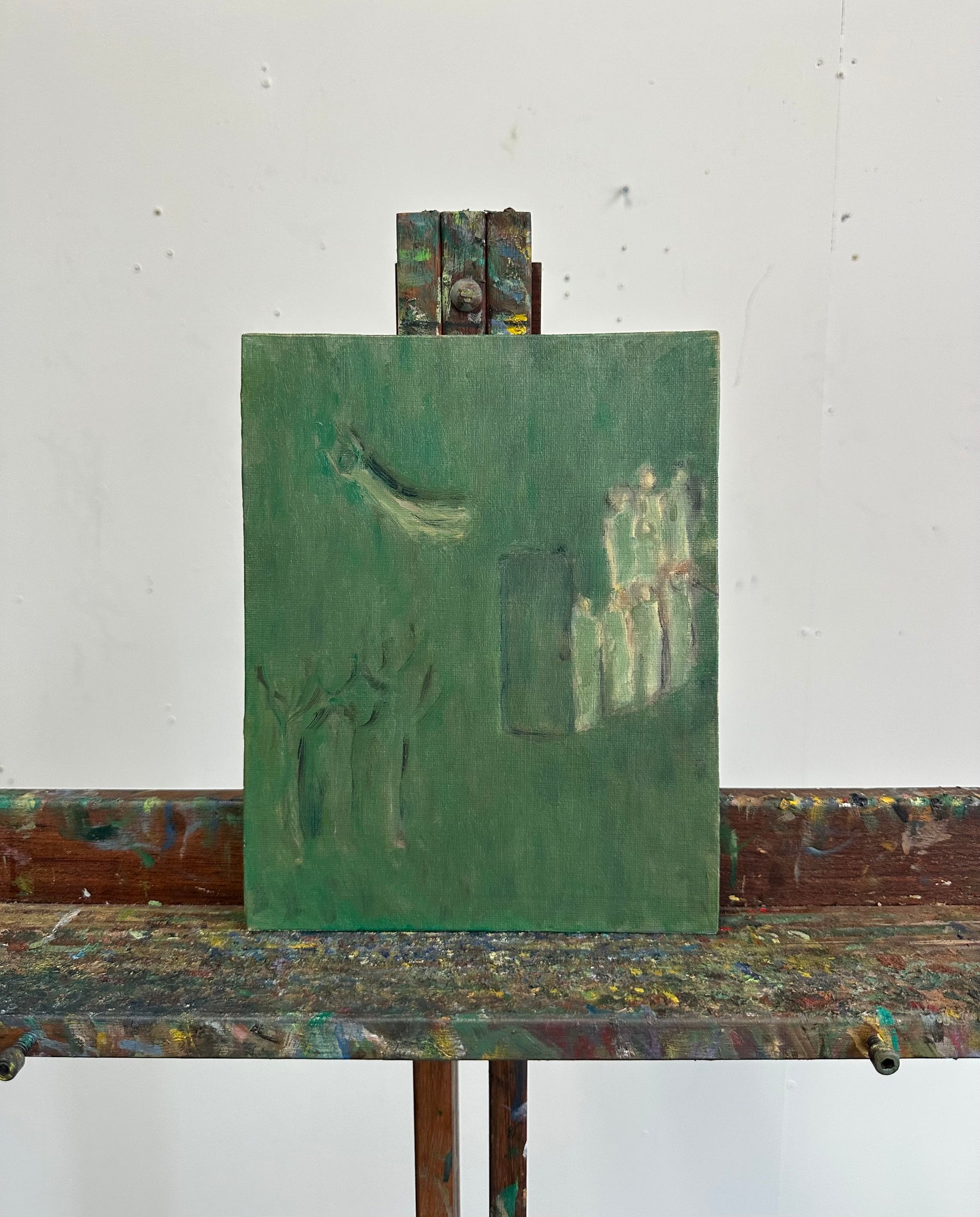 ’Distant Sky’, oil on canvas panel, 20cm x 25.5cm, unframed.